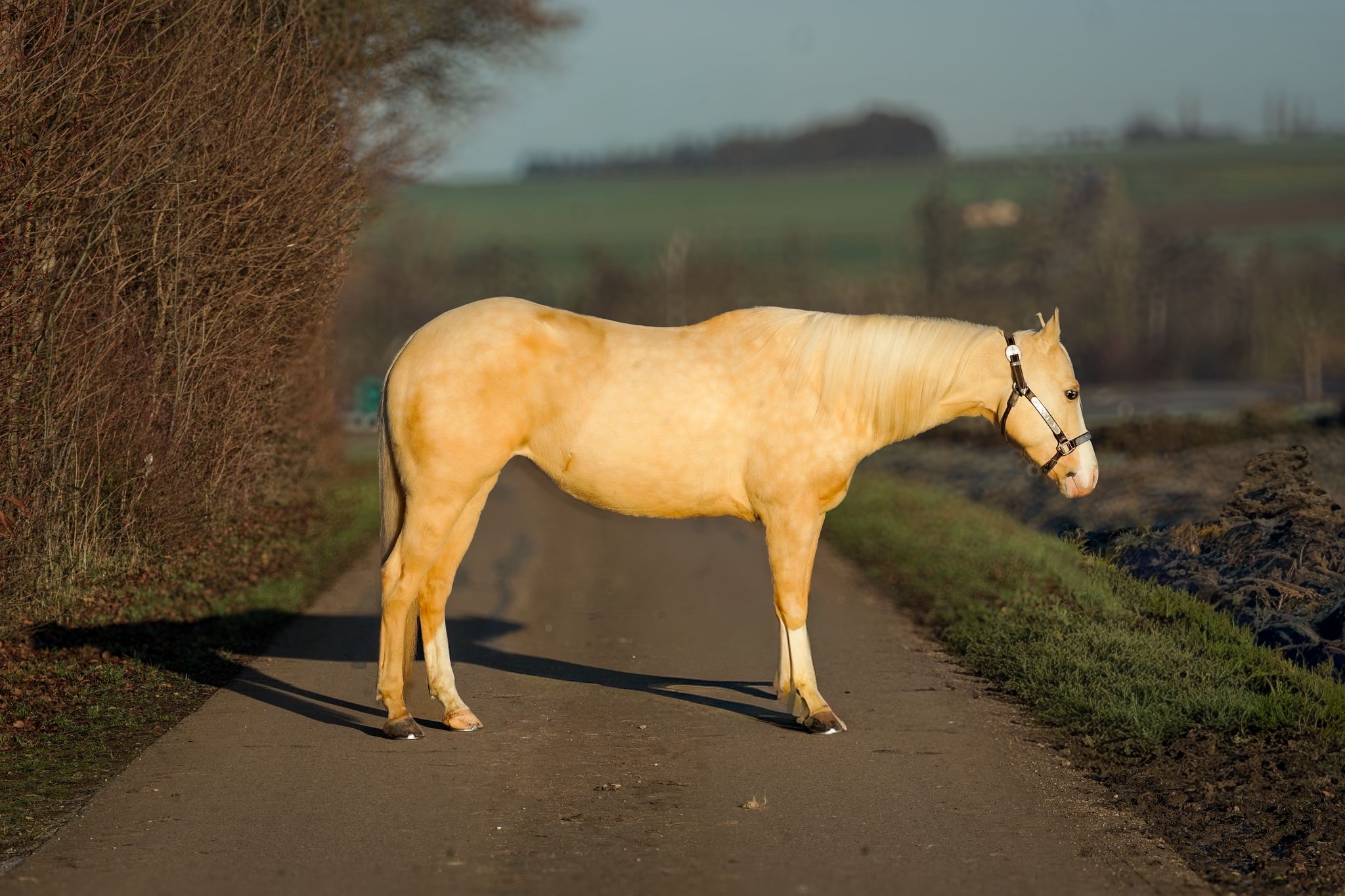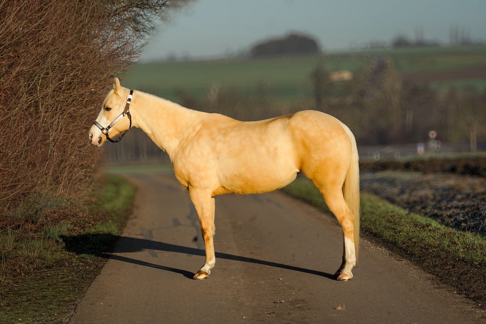 Honey ist eine außergewöhnlich schöne Palomino-Jungstute mit zwei blauen Augen, einem Herzen aus Gold und einem ganz besonderen Charme. Ein angeschliffener Rohdiamant – mit einer ganz besonderer Ausstrahlung, optisch wie charakterlich und mit diesem gewissen Etwas, das man nicht beschreiben, sondern fühlen muss.